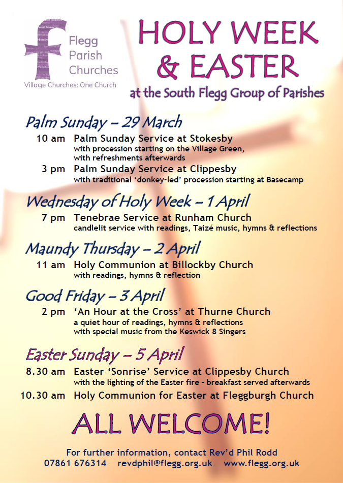- Holy Week Evening Prayer (Flegg South) at Clippesby Church Tuesday 31st March at 5pm