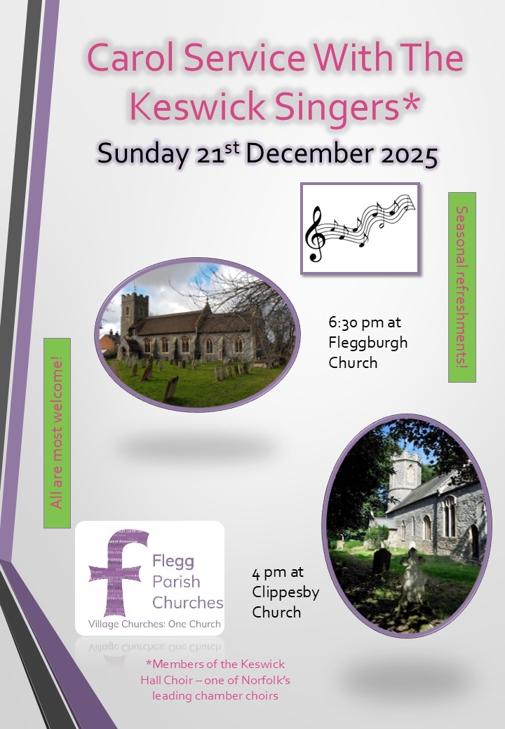 - Carol Service with the Keswick Singers at Clippesby Church Sunday 21st December at 4pm